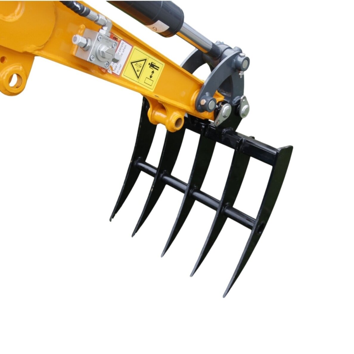 - Tvirtinamas vietoje kaušo, valdomas per esamą hidraulinį cilindrą