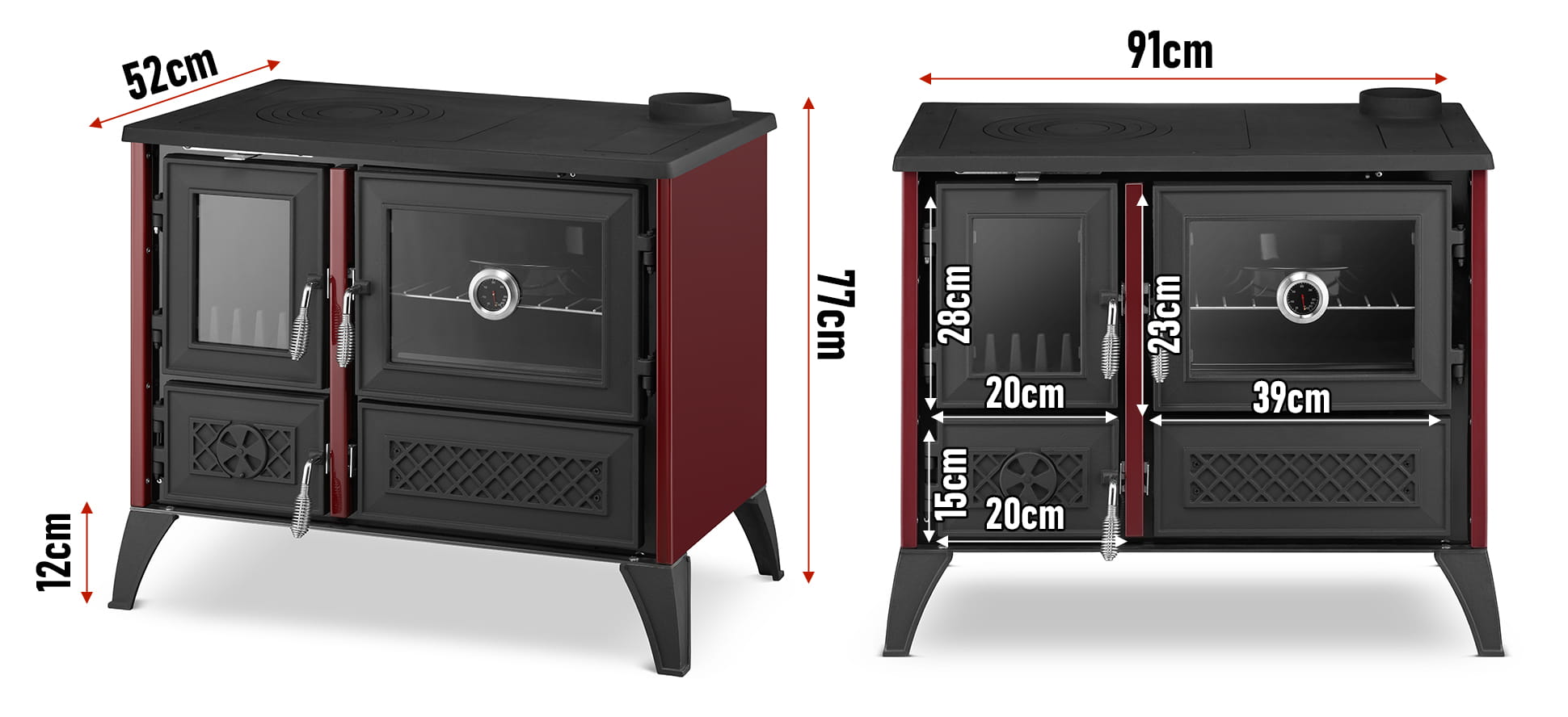 Krosnelės matmenys | (A x P x G) 77 x 91 x 52 cm |