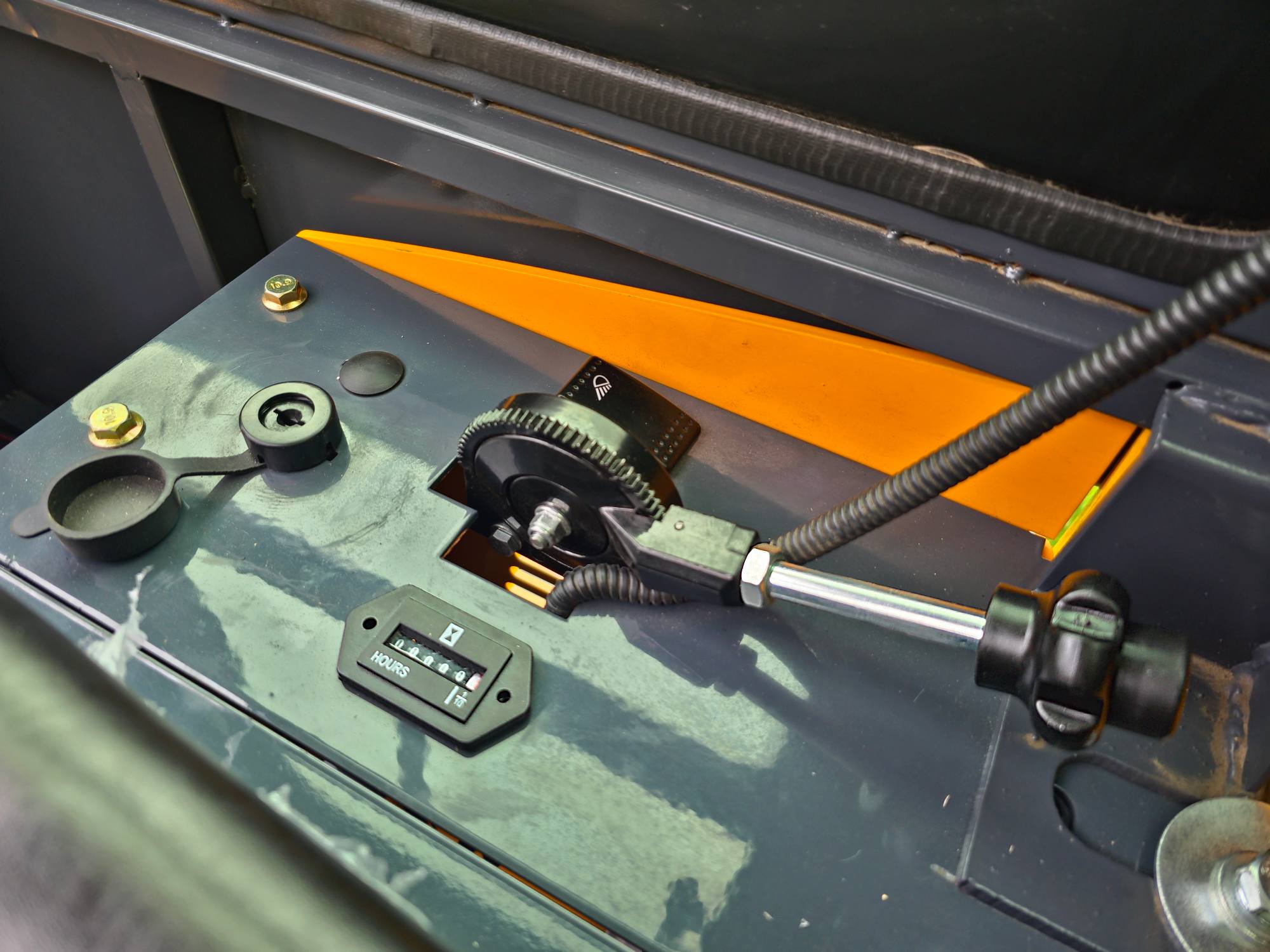 Galima komplektacija su įvairiais priedais: kaušu, kaltu, žoliapjove, grąžtu ir kt.
