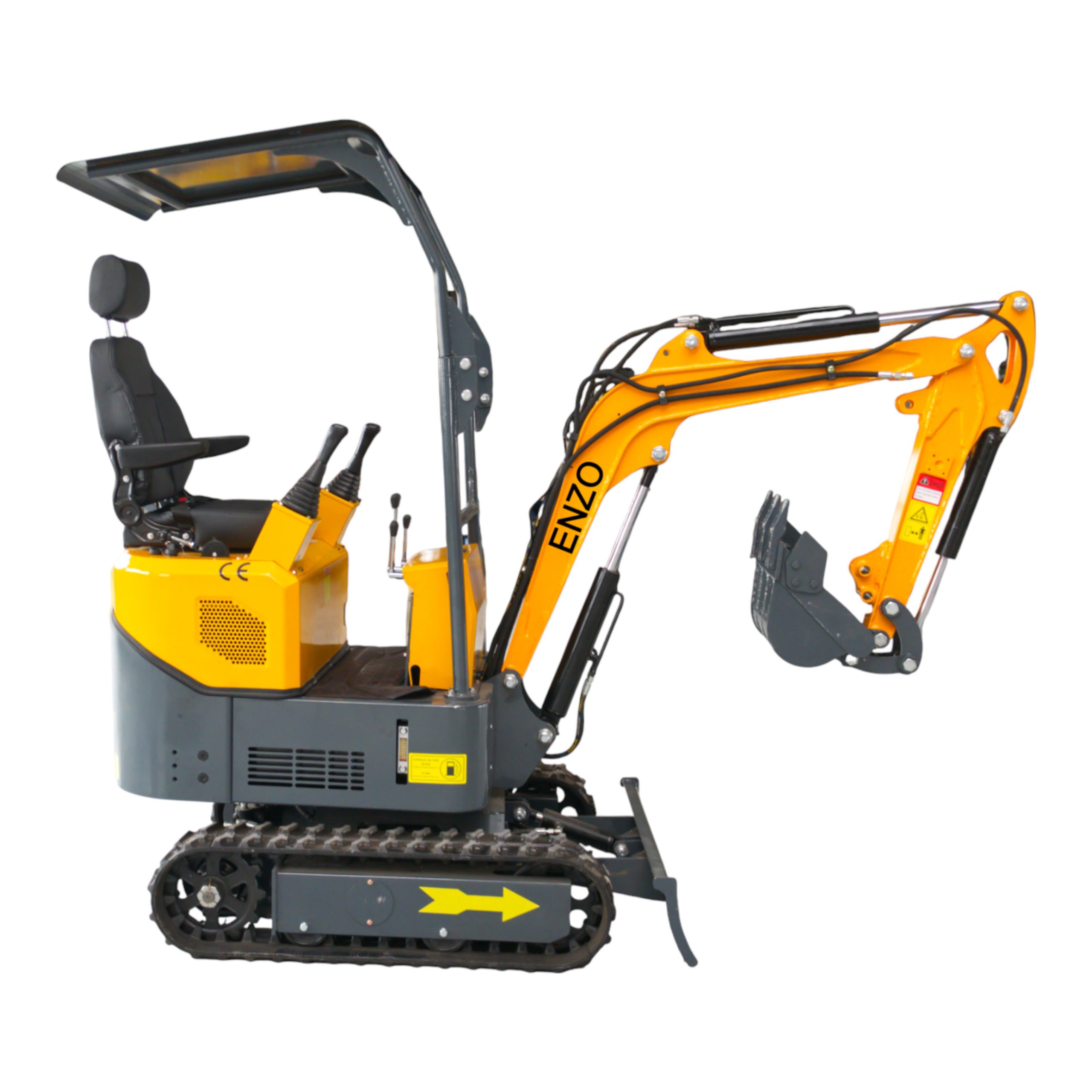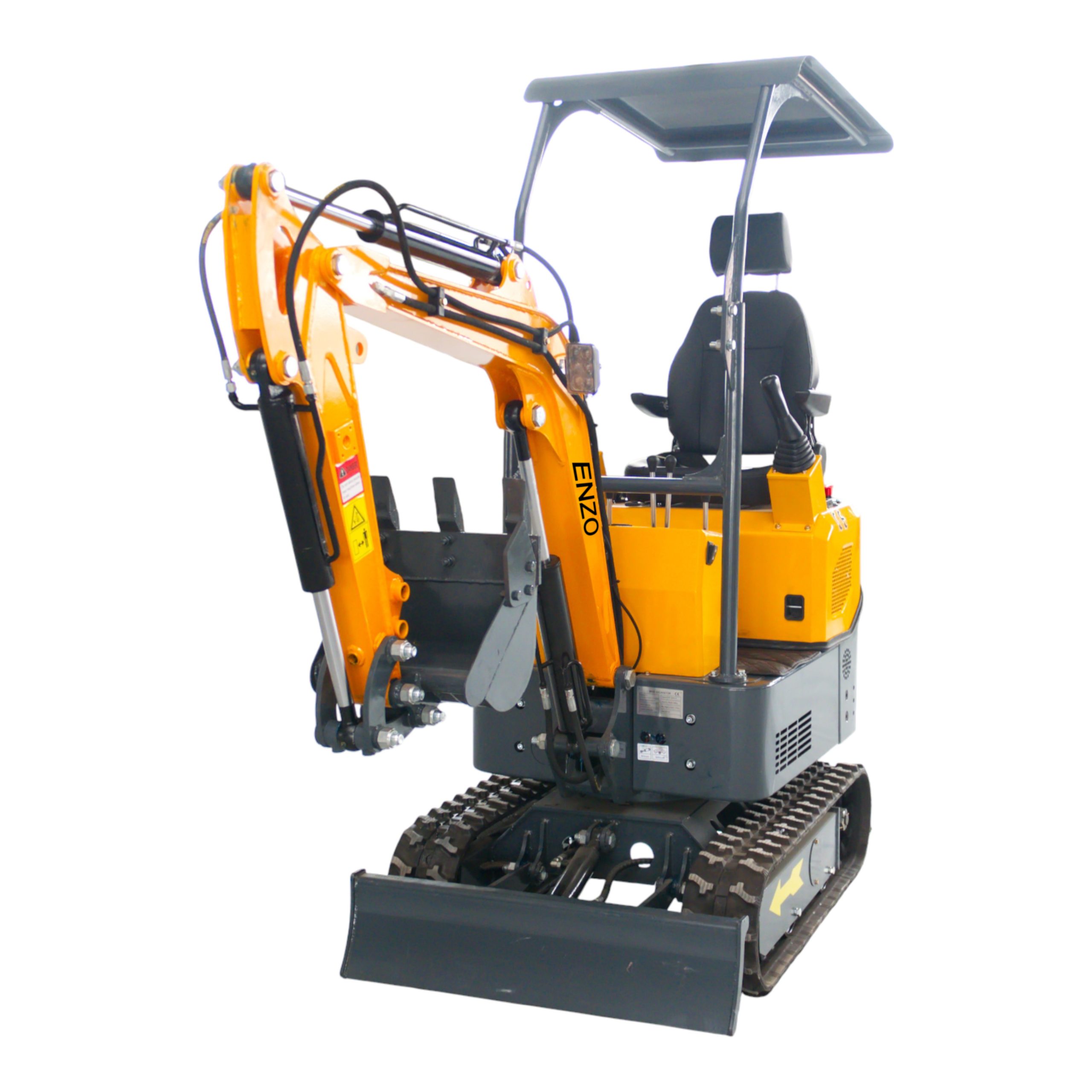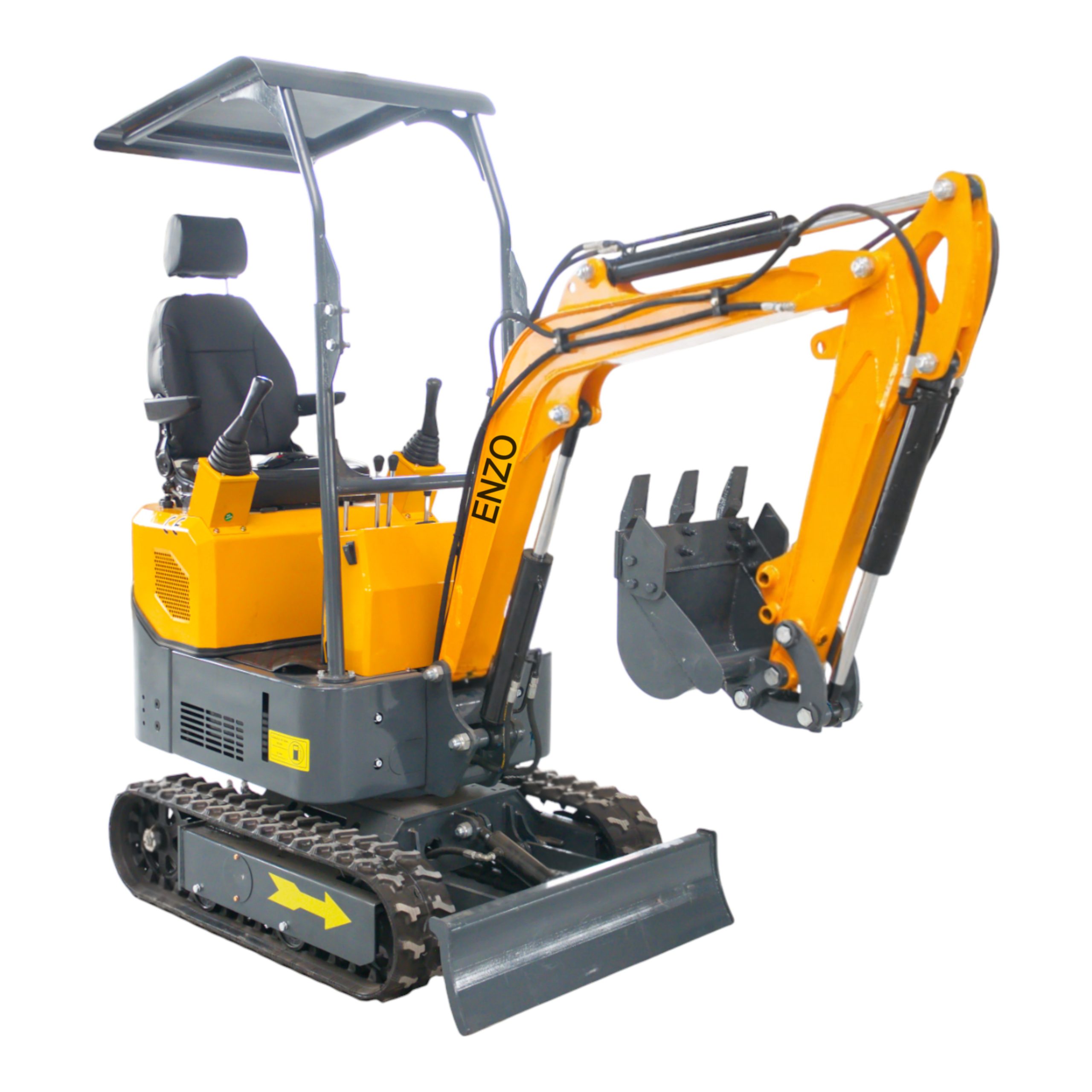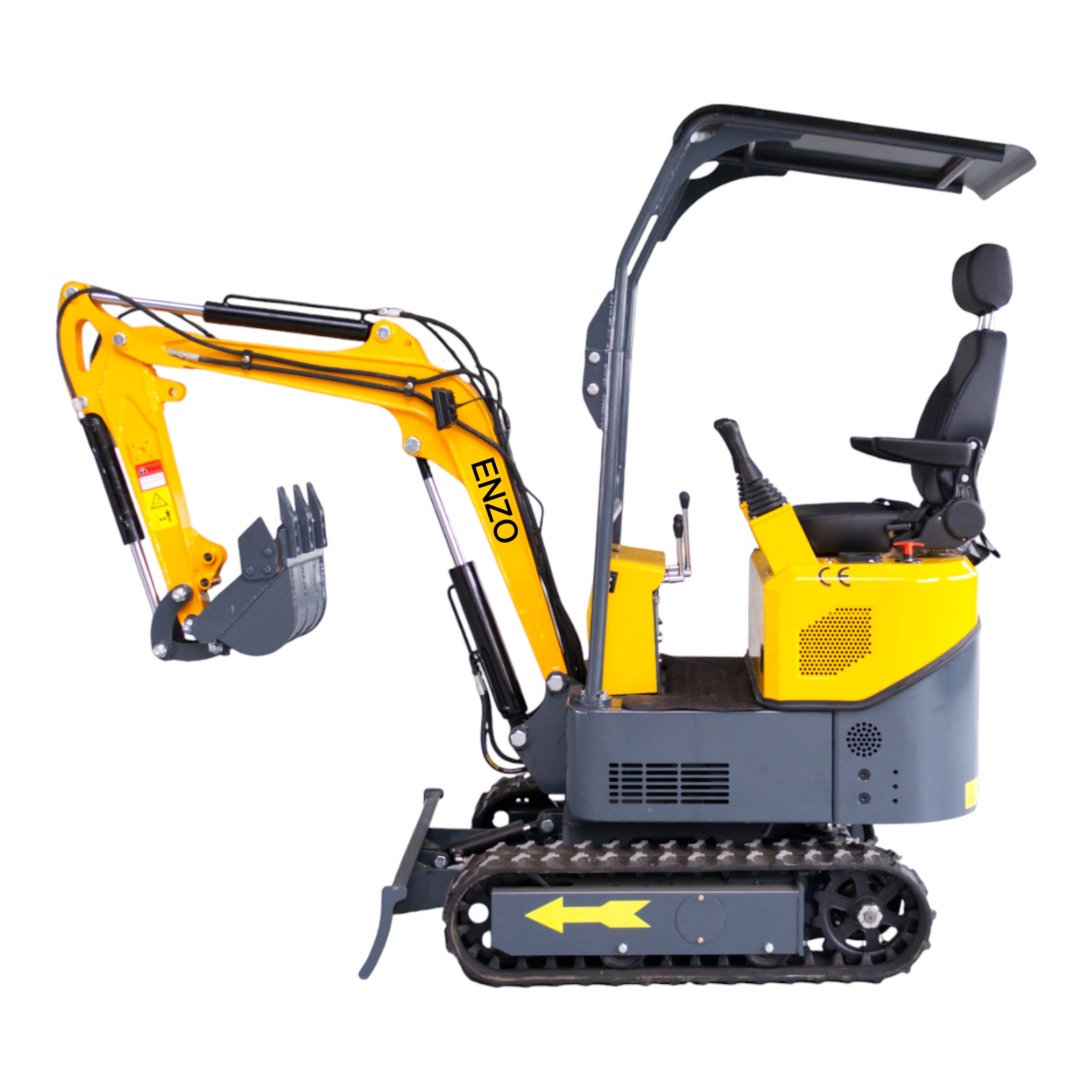 Mini ekskavatorius ENZO HT-10E / HT10E – tai patikimas, lengvai valdomas ir kompaktiškas statybinis įrenginys, skirtas žemės kasimui, griovių formavimui, žolės pjovimui ir kitiems sodo bei statybų darbams. Dėl mažų išmatavimų šis modelis puikiai tinka darbui siaurose erdvėse, pavyzdžiui kiemuose, soduose ar šiltnamiuose. Atviras stogelis apsaugo operatorių nuo saulės ir lietaus, užtikrina puikų matomumą ir maksimalų darbo komfortą, o patogi sėdynė su galvos atlošu suteikia papildomą atramą ilgesnių darbų metu. Ergonomiškai šonuose išdėstytos valdymo svirtelės (joystickai) leidžia dirbti natūralesne rankų padėtimi, mažina nuovargį ir užtikrina patogesnį bei tikslesnį ekskavatoriaus valdymą. Specifikacijos- Variklis: dyzelinis KOOP KD192FC, 7 kW galia (apie 9,5 AG), vieno cilindro, aušinamas oru – ekonomiškas ir patikimas sprendimas kasdieniam darbui.