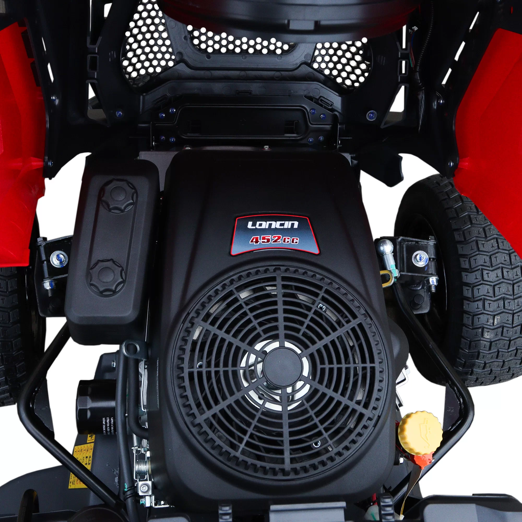 Vejos traktorius RIDER R102-BH sukurtas tiems, kuriems reikia didelio našumo, patikimumo ir švaraus pjovimo rezultato prižiūrint didesnius vejos plotus. Jis komplektuojamas su dviejų cilindrų „Loncin LC2P73F“ benzininiu varikliu, kurio darbinis tūris siekia apie 586 cm³, o galia – 12,5 kW, todėl traktoriukas užtikrina stabilų ir galingą darbą net tankioje ar aukštoje žolėje. Variklis užvedamas elektriniu starteriu, todėl paleidimas greitas ir patogus.