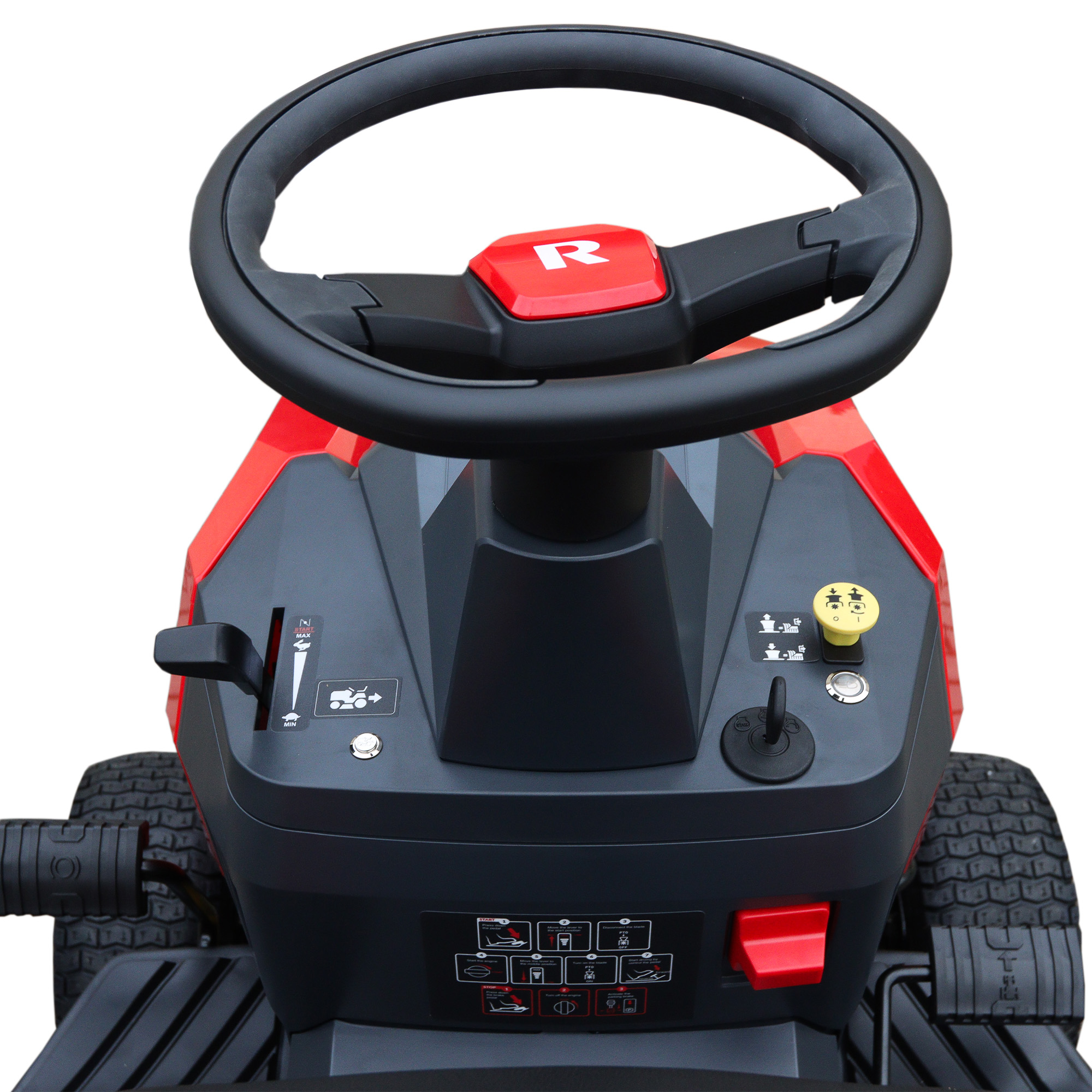 Tvirta konstrukcija ir 233 kg svoris suteikia traktoriukui stabilumo net dirbant nelygesnėje vietovėje ar didesniu greičiu, o 8,5 litro kuro bakas leidžia dirbti ilgiau be dažnų sustojimų papildyti degalus.